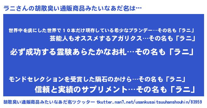 | ヒーロー風カッコイイあだ名 | 『スーパーラニ』『仮面ラニダー』 |