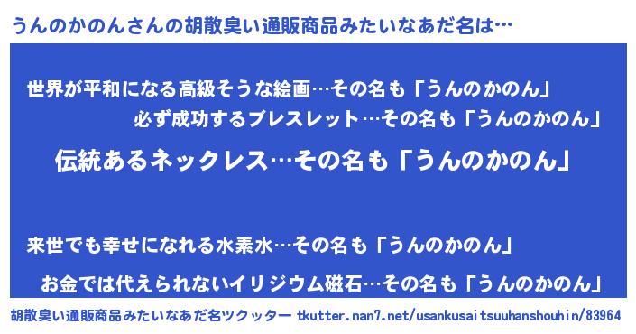 | 欧米人風あだ名 | 『ウサインうんのかのん』 |