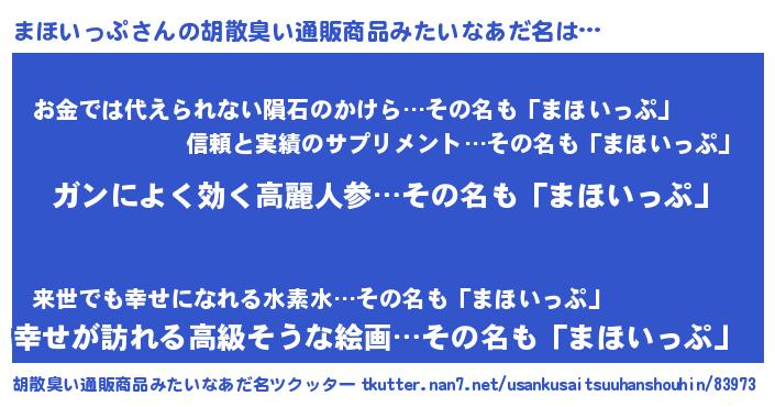 | 意味不明あだ名 | 『自称まほいっぷ』 |