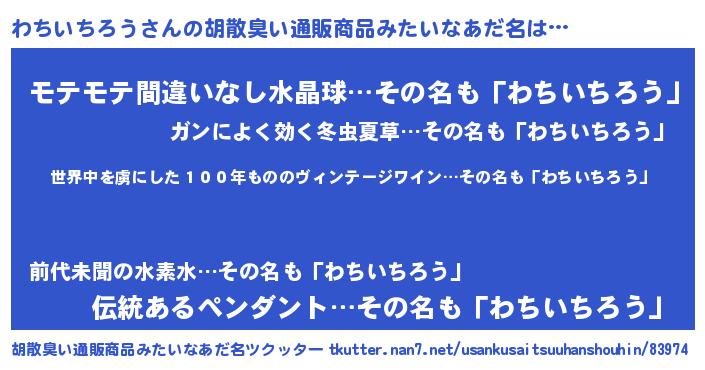 | 男性向けラノベタイトル風あだ名 | 『この素晴らしい世界にわちいちろうを!』 |