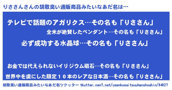 | ヘコむあだ名 | 『りさにゅー』『りさ太郎』 |