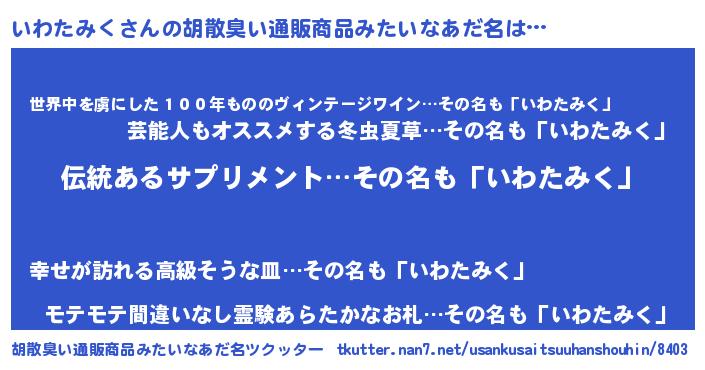 | 肩書あだ名 | 『いわたみく団長』『いわたみく少佐』 |
