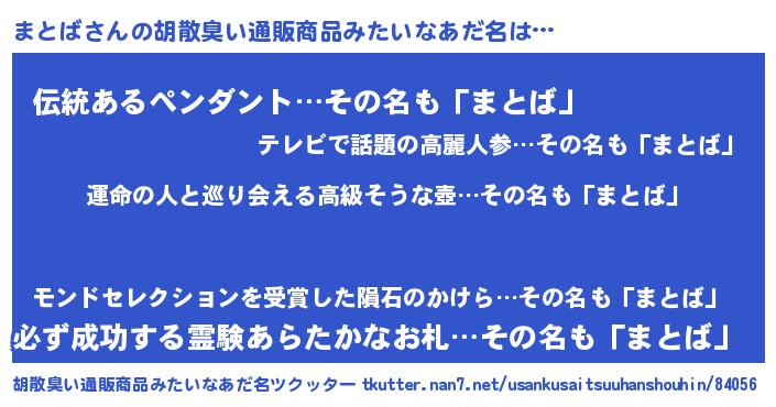 | 意味不明あだ名 | 『まとばフォーエバー』『ペロリンまとば』 |