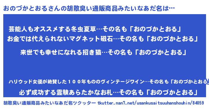 | 意味不明あだ名 | 『永久保存おのづかとおる』 |