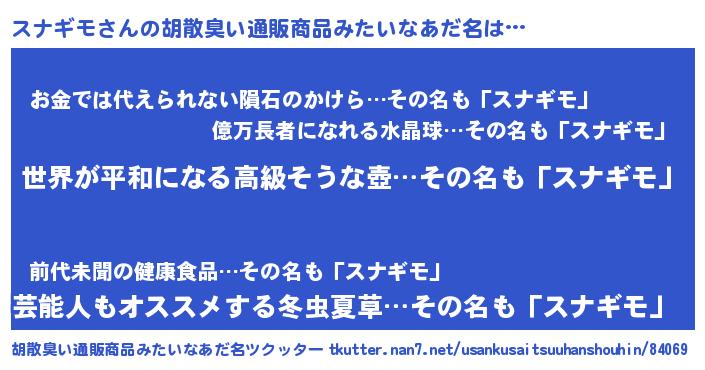| ヒーロー風カッコイイあだ名 | 『ウルトラスナギモマン』『ネオスナギモ』 |