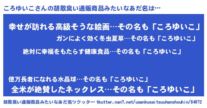 | 意味不明あだ名 | 『永久保存ころゆいこ』『自称ころゆいこ』 |