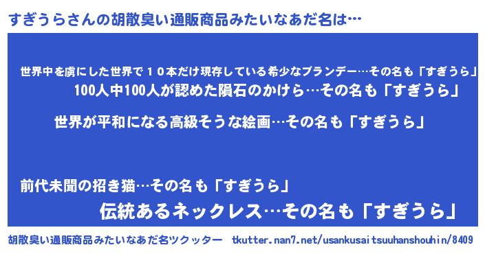 | 意味不明あだ名 | 『すぎうらフォーエバー』 |