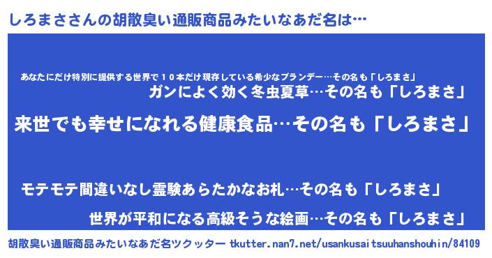 | 欧米人風あだ名 | 『しろまさ・ステッグマイヤー』 |