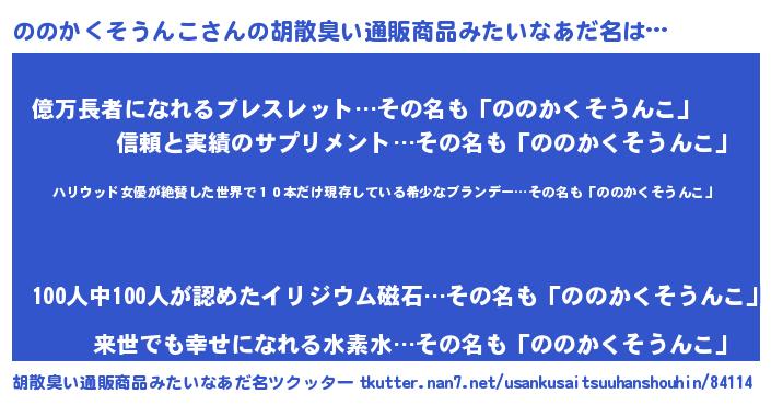 | 意味不明あだ名 | 『住所不定無職ののかくそうんこ(93歳)』 |