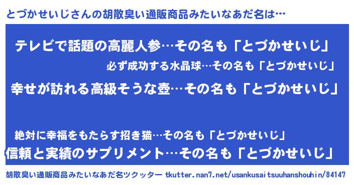 | 意味不明あだ名 | 『とづかせいじフォーエバー』 |