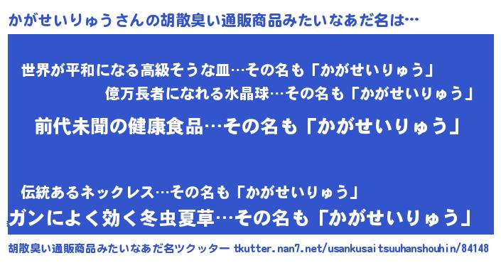 | 意味不明あだ名 | 『永久保存かがせいりゅう』 |