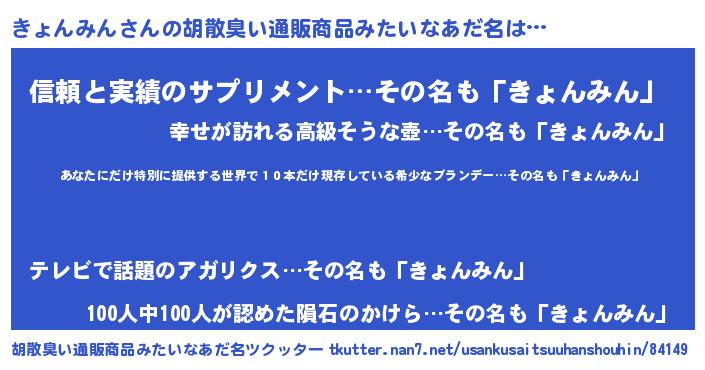| ヘコむあだ名 | 『きょぷりん』『つくし』『きょもー』 |