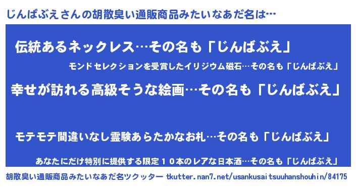 | 女子向けラノベタイトル風あだ名 | 『じんばぶえの雑貨屋さん』 |