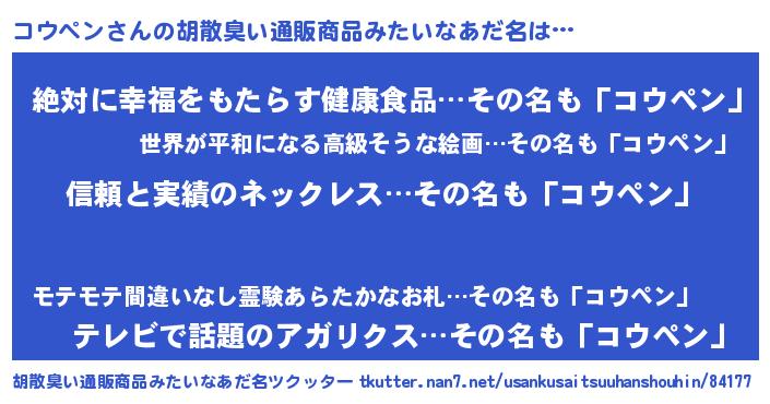 コウペンさんの胡散臭い通販商品みたいなあだ名をツクッター!
