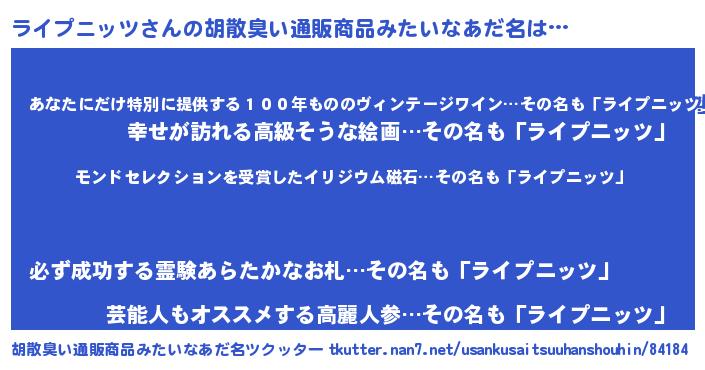 | 男性向けラノベタイトル風あだ名 | 『ノーゲーム・ノーライプニッツ』 |