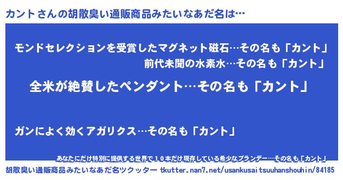 | 意味不明あだ名 | 『とにかく怪しいカント』 |