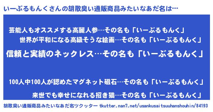 | 伝説のあだ名 | 『孤高の僧侶いーぶるもんく』 |