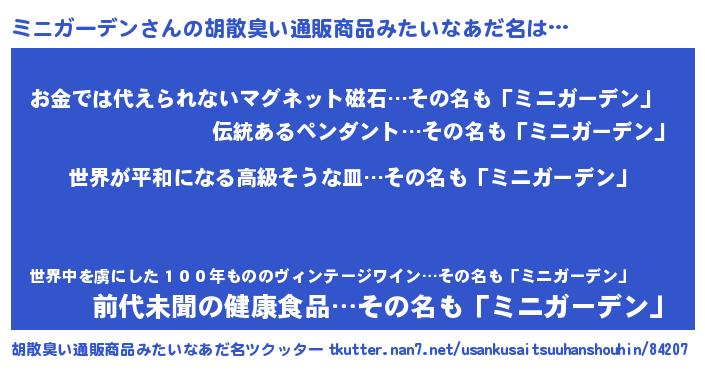 | 意味不明あだ名 | 『ミニガーデンフォーエバー』 |