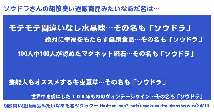 | ヘコむあだ名 | 『ソウにー』『ソウドラ(爆)』『豆乳』 |