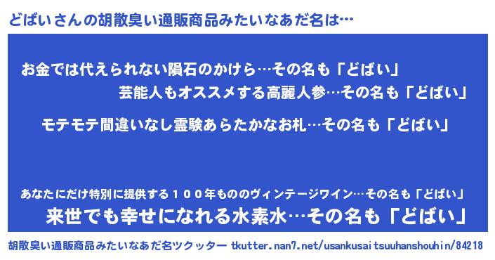どばいさんの胡散臭い通販商品みたいなあだ名をツクッター!