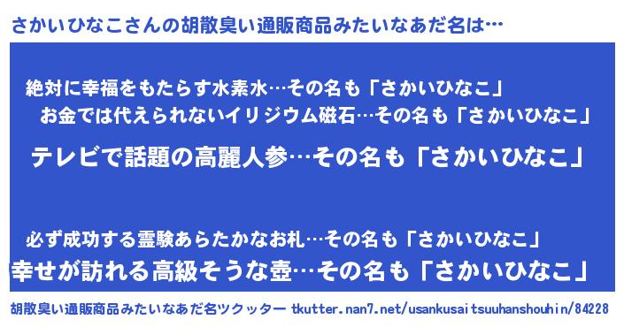 | 肩書あだ名 | 『さかいひなこ少佐』『さかいひなこ総統』 |