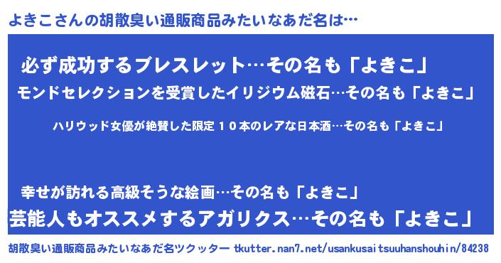 | 意味不明あだ名 | 『住所不定無職よきこ(68歳)』『自称よきこ』 |