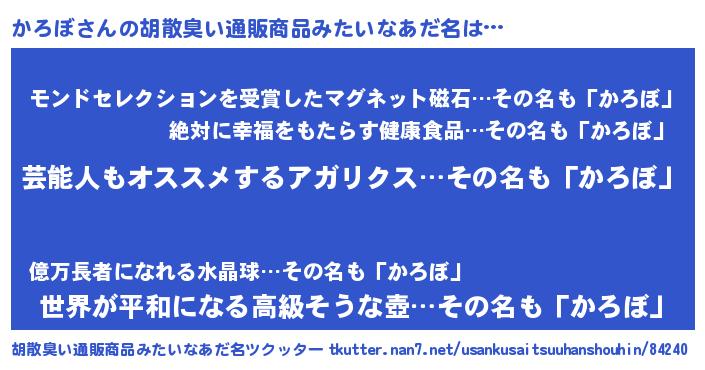| 意味不明あだ名 | 『ニラ科かろぼ属』『自称かろぼ』 |