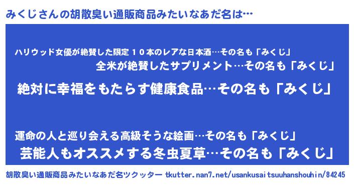 | 欧米人風あだ名 | 『トリンドルみくじ』『ダレノガレみくじ』 |