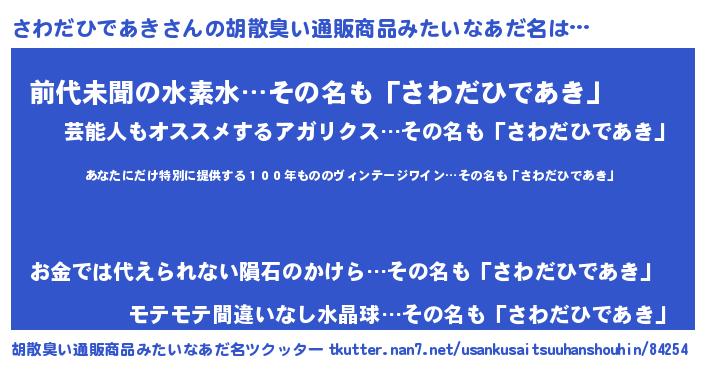 | ヘコむあだ名 | 『さわだひであき(笑)』『さわにー』 |