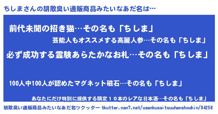 | ヘコむあだ名 | 『ちしっふぃ~』『ちしま(笑)』 |