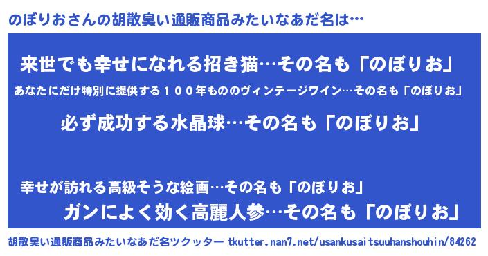 | ヘコむあだ名 | 『のぼにゅー』『のぼりお(笑)』 |