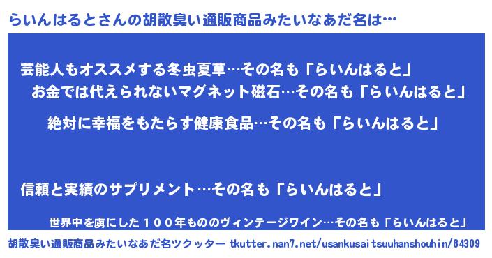 | 男性向けラノベタイトル風あだ名 | 『らいんはるとという概念が存在しない退屈な世界 』 |