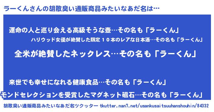 | 男性向けラノベタイトル風あだ名 | 『ラーくんの嫁は女の子じゃないと思った?』 |