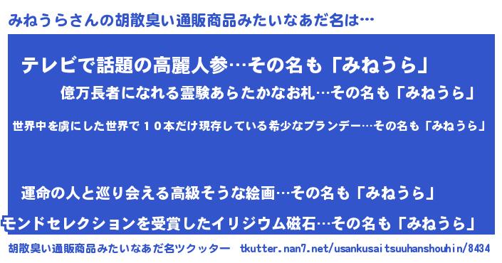 | 男性向けラノベタイトル風あだ名 | 『転生したらみねうらだった件』 |
