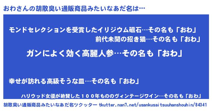 | 意味不明あだ名 | 『自称おわ』『眠気覚ましガムおわ味』 |