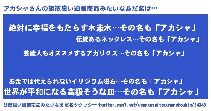 | 意味不明あだ名 | 『自称アカシャ』『ニラ科アカシャ属』 |