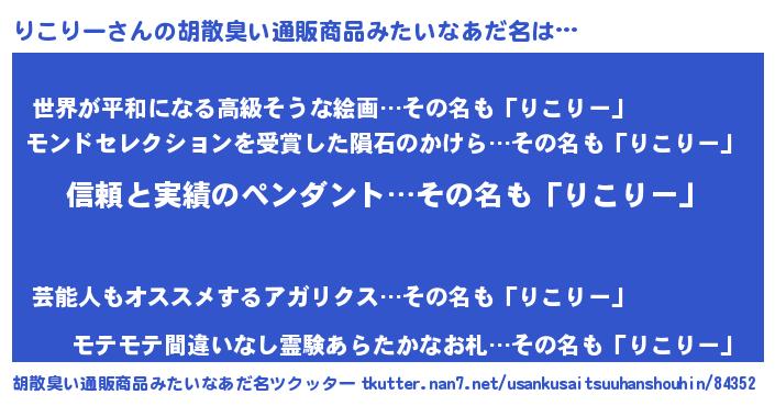 | 意味不明あだ名 | 『とにかく怪しいりこりー』 |