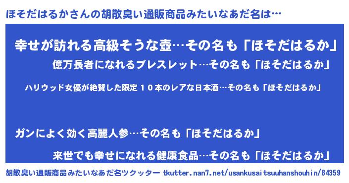 | 意味不明あだ名 | 『住所不定無職ほそだはるか(65歳)』 |