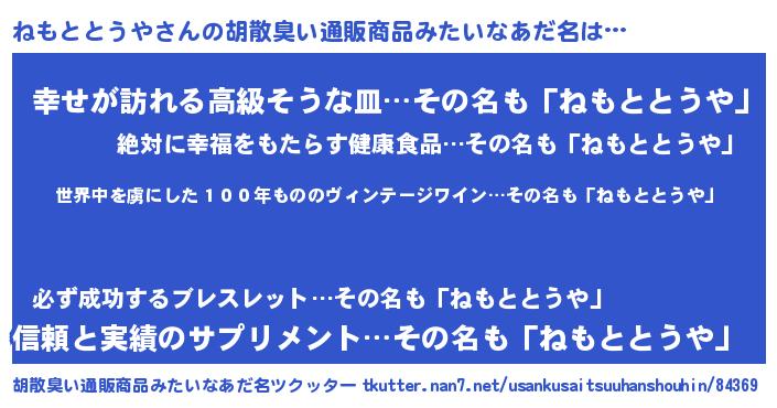| 意味不明あだ名 | 『もやし科ねもととうや属』 |