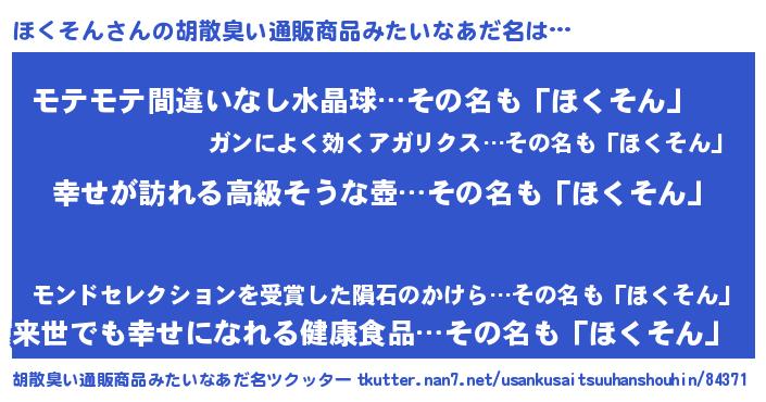 | 意味不明あだ名 | 『ほくそんフォーエバー』『自称ほくそん』 |