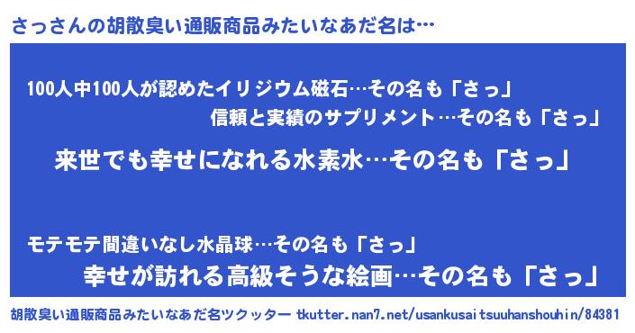 | ヘコむあだ名 | 『さっ(苦笑)』『牛乳』『さっっちょ』 |