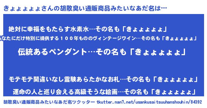 きょょょょょさんの胡散臭い通販商品みたいなあだ名をツクッター!