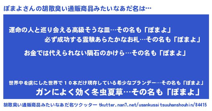 | ヘコむあだ名 | 『なまこ酢』『ぽまにゅー』 |