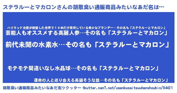 | ヘコむあだ名 | 『ステラルーとマカロン(苦笑)』『牛乳』 |