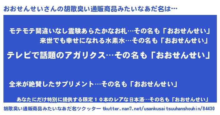 | 意味不明あだ名 | 『自称おおせんせい』 |