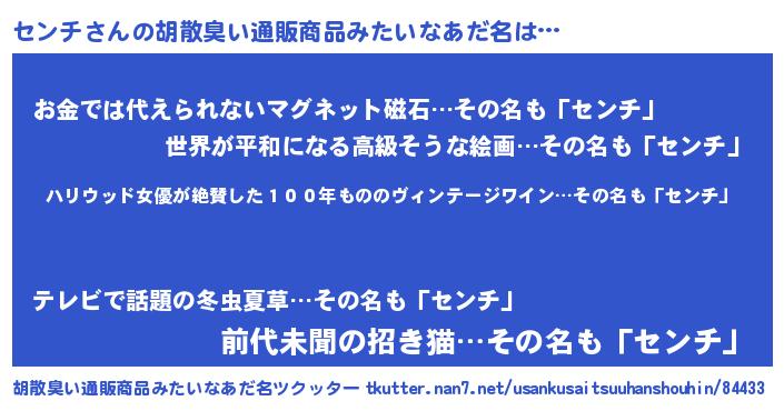 | 男性向けラノベタイトル風あだ名 | 『緋弾のセンチ』『魔弾の王とセンチ』 |