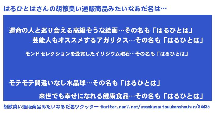 | ヘコむあだ名 | 『酢こんぶ』『はるひとは(笑)』 |