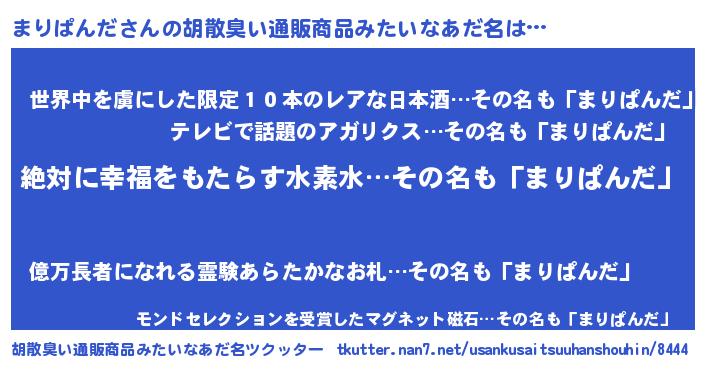 | 意味不明あだ名 | 『永久保存まりぱんだ』『自称まりぱんだ』 |