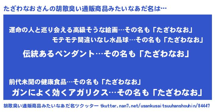| 女子向けラノベタイトル風あだ名 | 『たざわなおの卵を拾いまして』 |