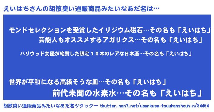 | ヒーロー風カッコイイあだ名 | 『仮面エイダー』『慈愛の使者えいはち』 |